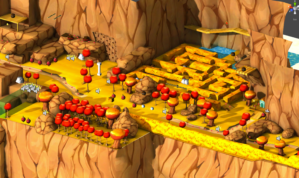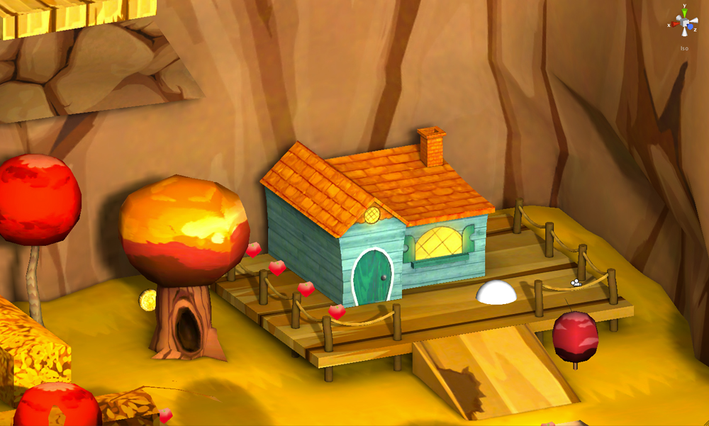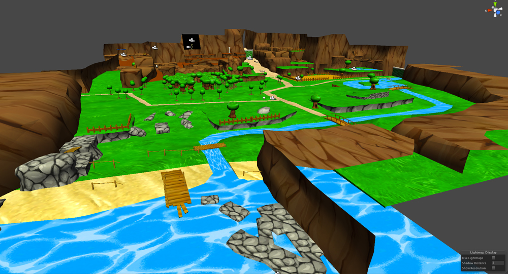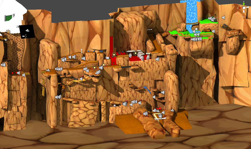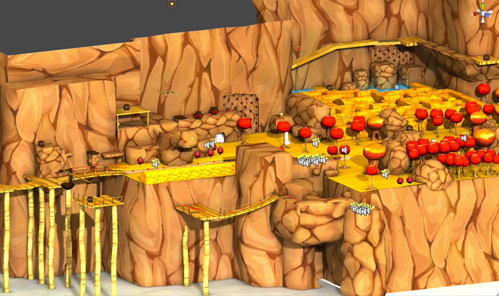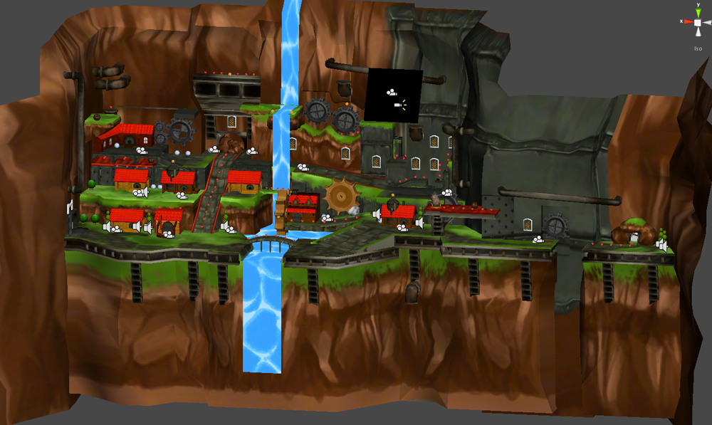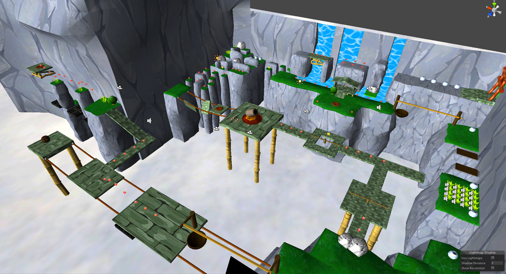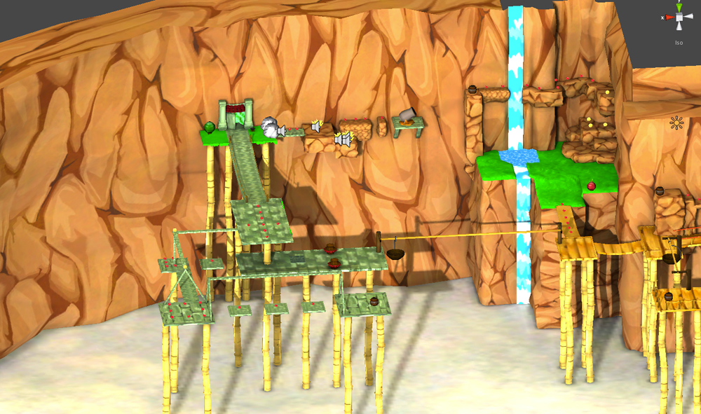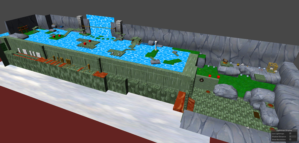 The level was modelled and unwrapped by me. I also textured the bamboo and green wood platforms.